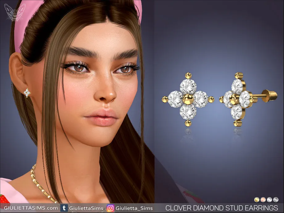 Clover Diamond Stud Earrings come in 4 colors of metal: yellow gold, white gold, rose gold and black plated.