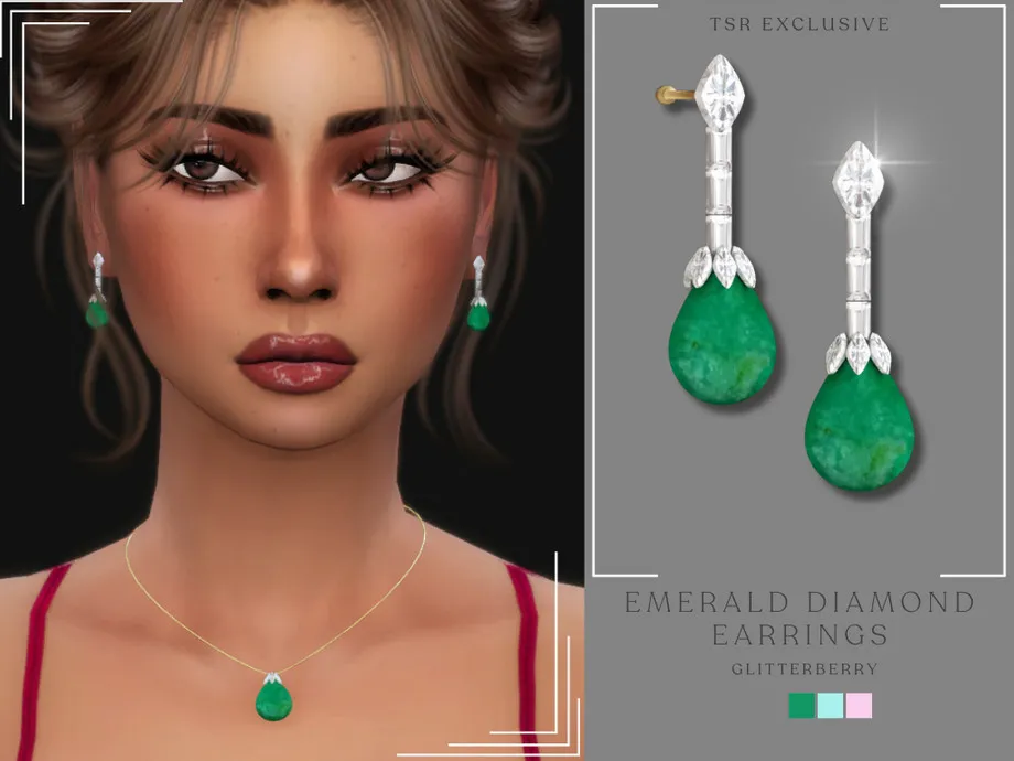 Emerald earrings with diamonds. Comes in pink, blue and opal swatches
