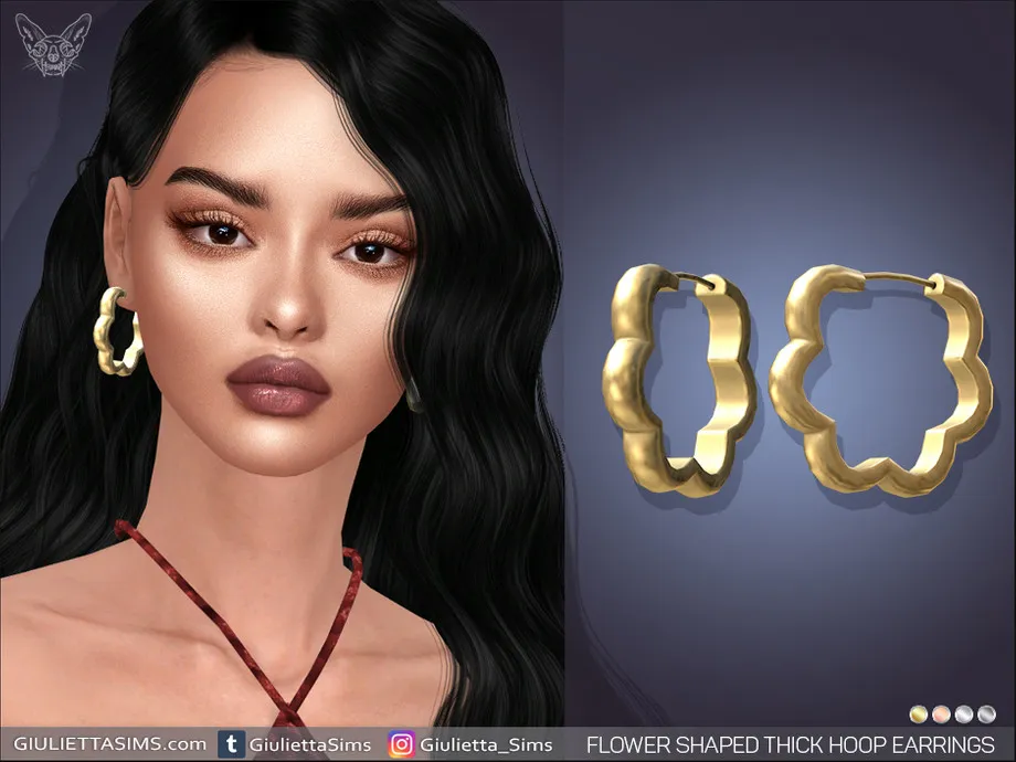 Flower Shape Thick Hoop Earrings come in 4 colors of metal: yellow gold, white gold, rose gold and black plated.