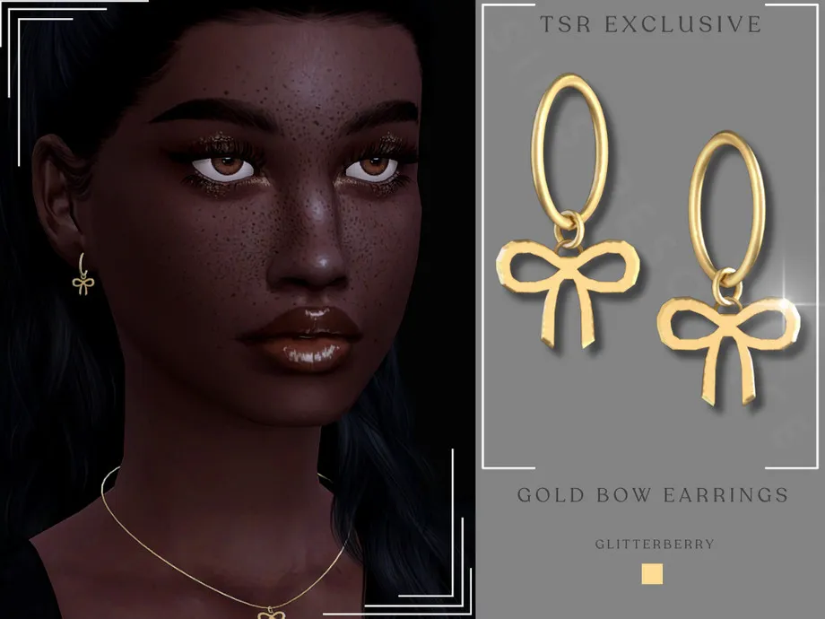 A gold hoop earring with bow pendant