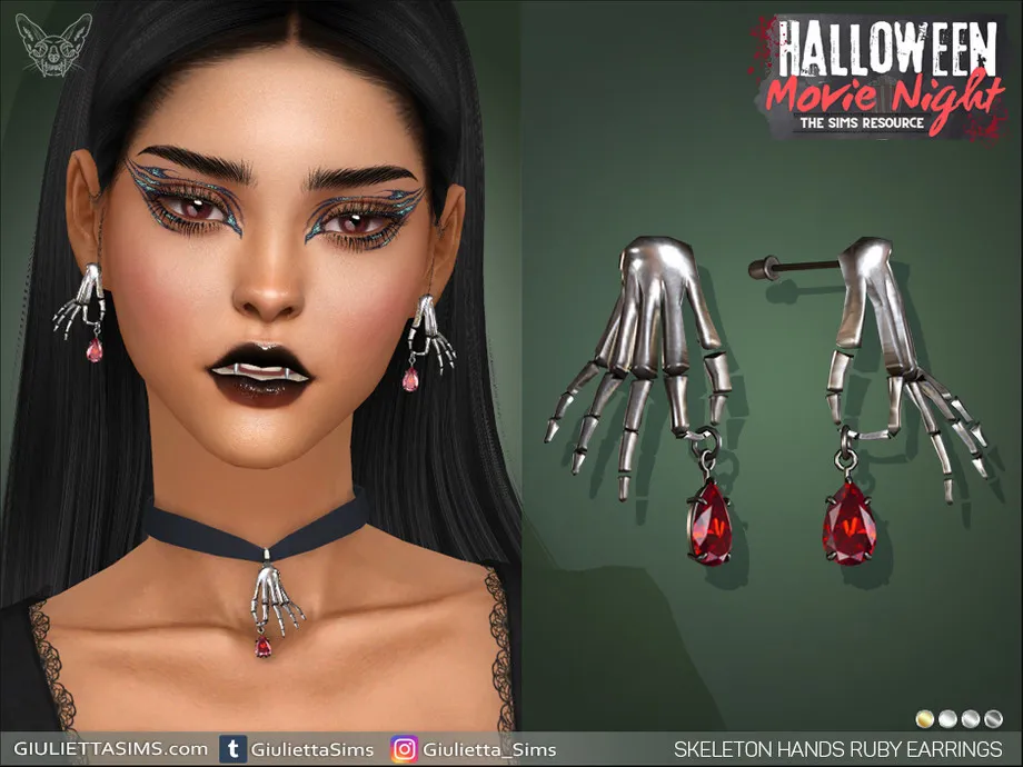 Skeleton Ruby Hands Earrings come with 4 swatches.
