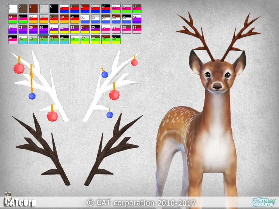Recolors contains 9 Christmas decorations recolors for each 5 horn colors and 5 recolor for horn without Christmas decorations