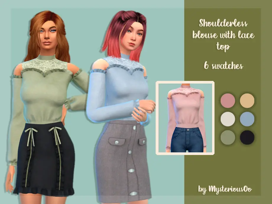 Shoulderless blouse with lace top in 6 colors