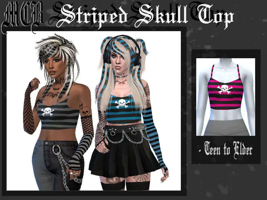Cute striped mini top with a skull and bones <3 9 variations.