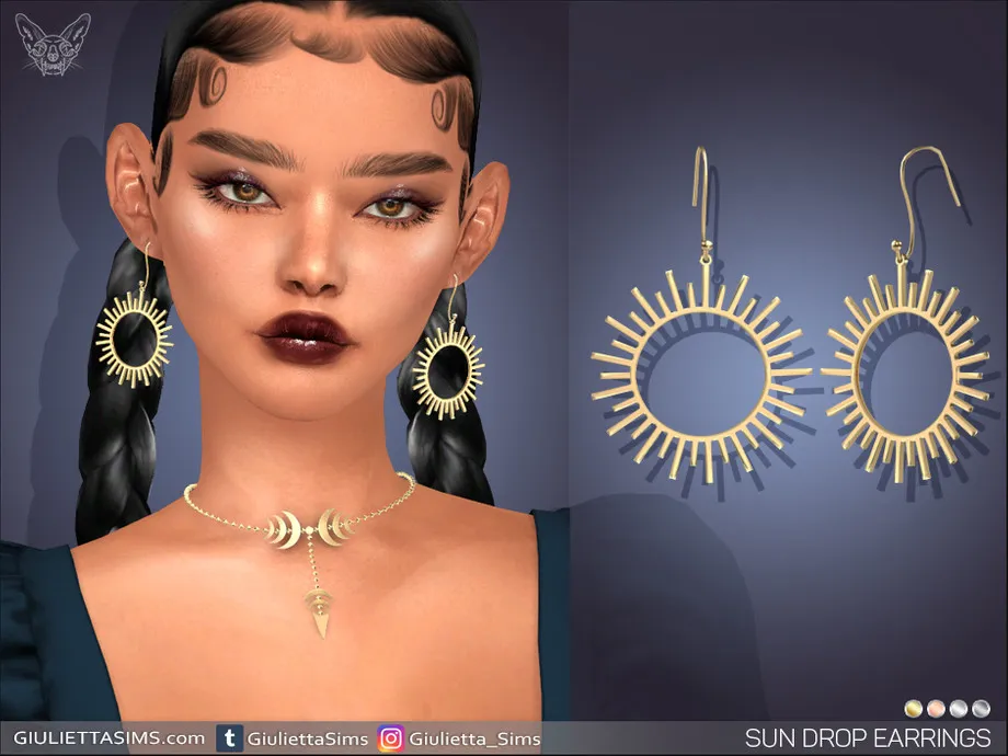 Sun Drop Earrings come in 4 colors of metal: yellow gold, white gold, rose gold and black plated.