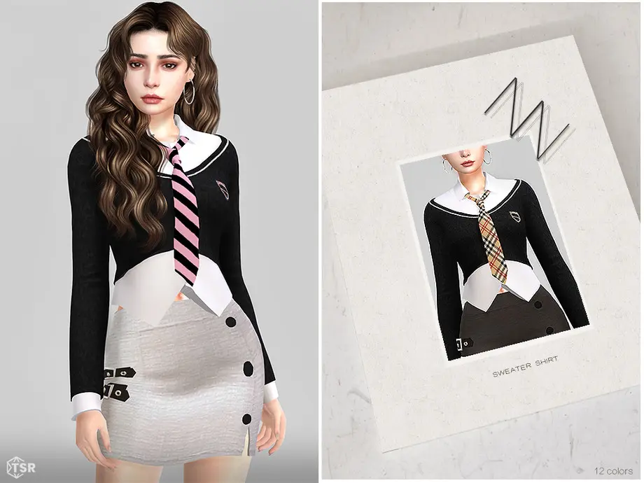 This dress design details: sweater, shirt, tie, short, two-piece suit. 12 colors.