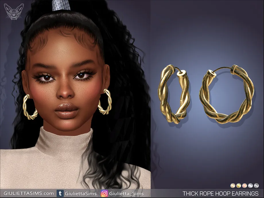 Thick Rope Hoop Earrings come in 4 colors of metal: yellow gold, white gold, rose gold and black plated.