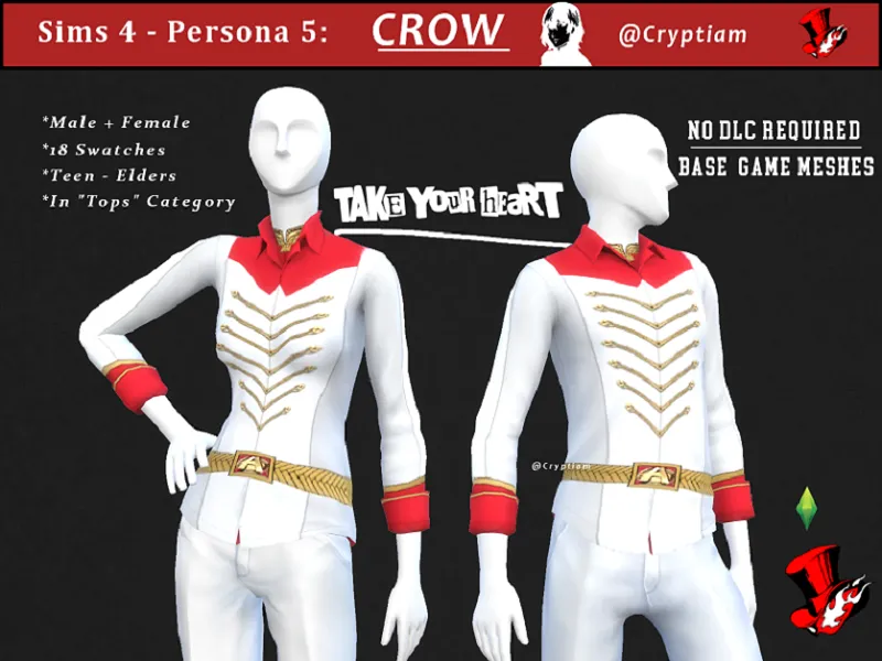 TS4 – Persona 3 CC: Minato Arisato/Protagonist Suit Top