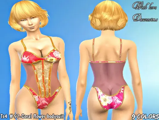 Ts4 #57-Coral flower bodysuit