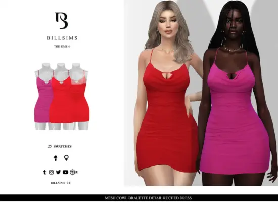 Mesh Cowl Bralette Detail Ruched Dress