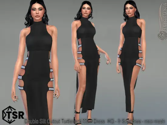 Double Slit Cutout Turtleneck Maxi Dress