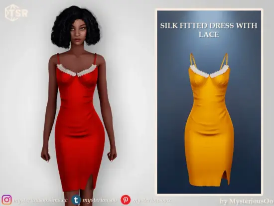 Silk fitted dress with lace